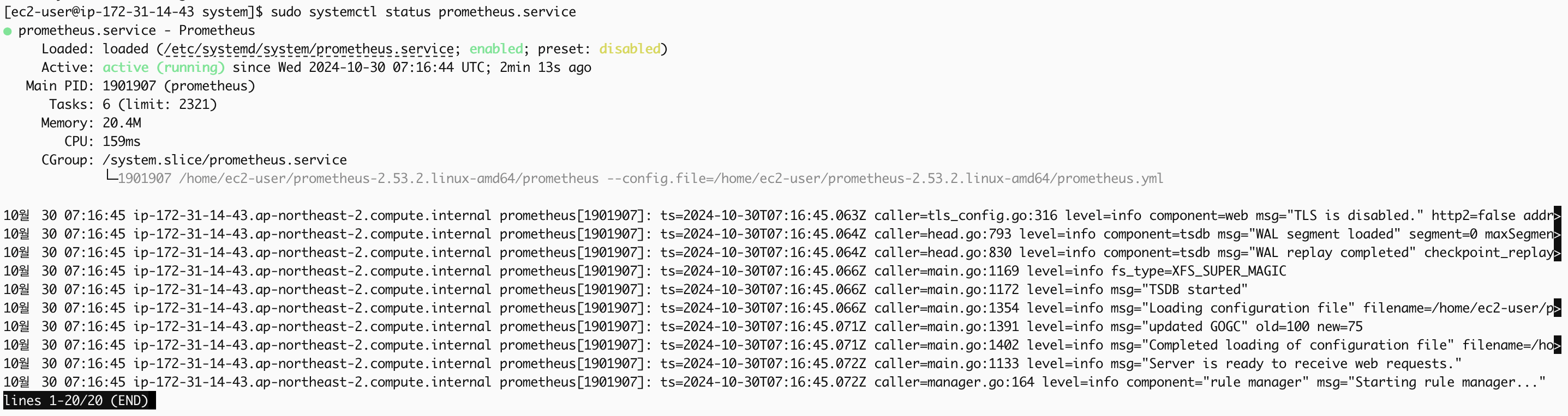 ExecStart=/home/ec2-user/prometheus-2.53.2.linux-amd64/prometheus --config.file=/home/ec2-user/prometheus-2.53.2.linux-amd64/prometheus.yml # 경로는 본인이 설정한 환경에 맞게 수정