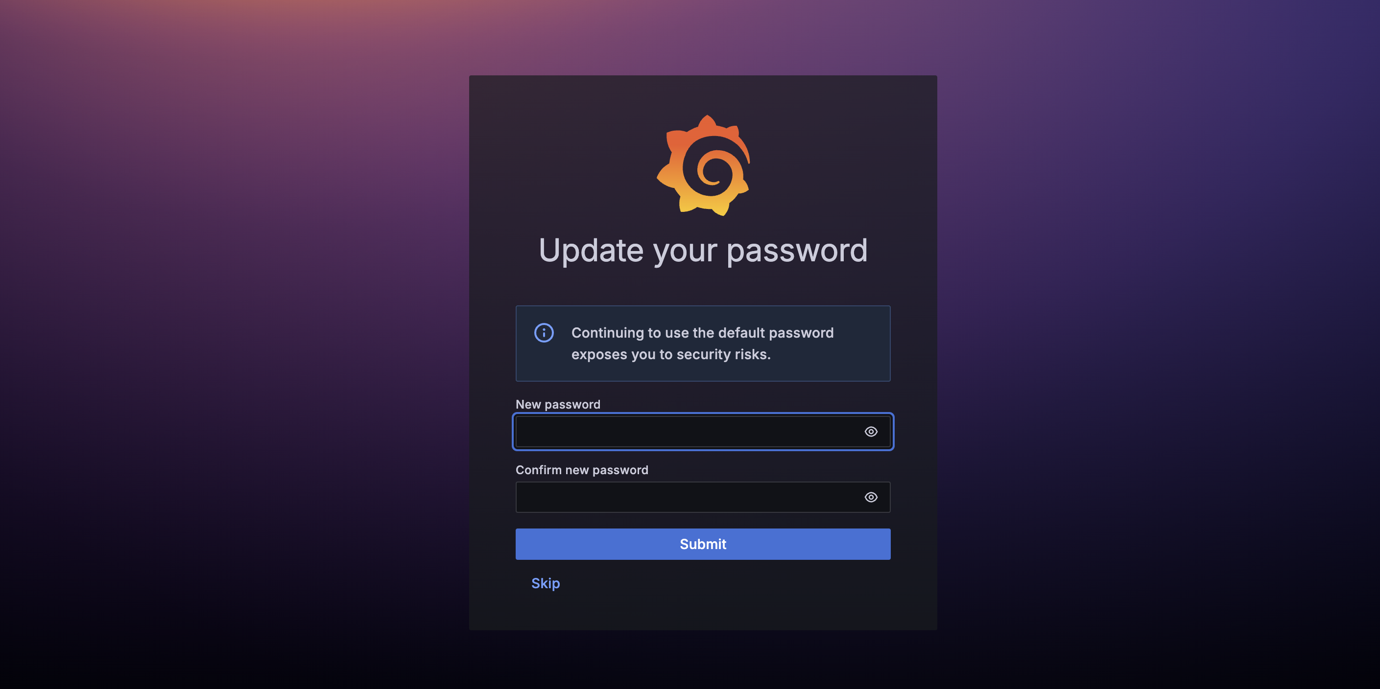 프로그램을 실행한 후 도메인:3000으로 접속하면 아래처럼 그라파나 로그인 화면이 뜹니다.