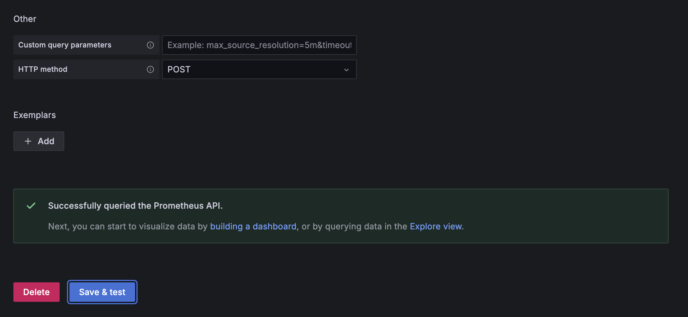 그러면 아래처럼 프로메테우스 db 설정창이 나옵니다. connection에서 프로메테우스의 경로를 입력합니다. 나머지 설정은 default에서 변경하지 않습니다.