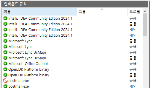 방화벽 설정을 보니, Intellij에 공용 네트워크 허용 설정이 되어 있지 않아서 공용 네트워크 설정도 해주었고, 서버에서 사용하는 8080번 포트에 대해서 인바운드를 모두 설정해주었음에도 불구하고 접속이 되지 않았습니다.